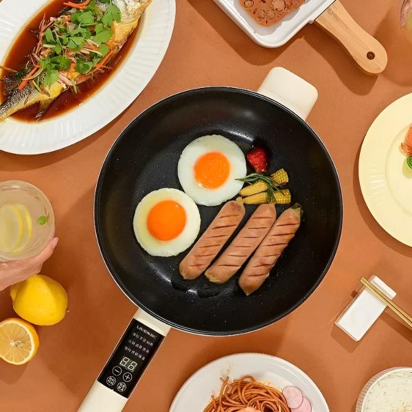 Αυτό το ηλεκτρικό τηγάνι σας επιτρέπει να ετοιμάζετε πλήρη γεύματα χωρίς να χρειάζεστε κουζίνα, ιδανικό για κάθε χώρο.