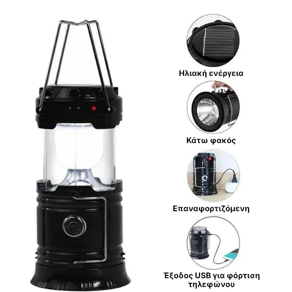Ηλιακό Επαναφορτιζόμενο Φανάρι Κάμπινγκ + Φακός | CAMPGLO