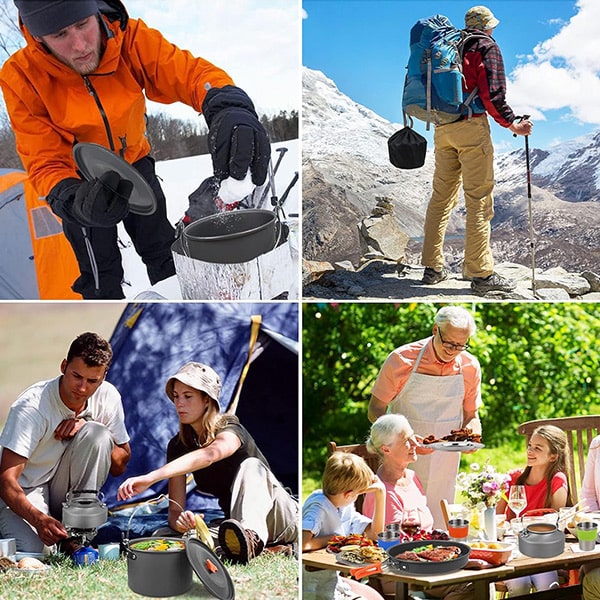 Μαγειρέψτε οπουδήποτε με αυτό το πολυχρηστικό, συμπαγές και ελαφρύ σετ μαγειρικών σκευών, ιδανικό για το σπίτι, τα ταξίδια και τις υπαίθριες περιπέτειες.