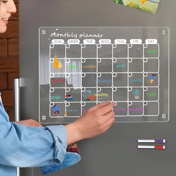 Ακρυλικό Σετ Ημερολογίου Ψυγείου – Μηνιαίο + Εβδομαδιαίο Πλάνο (το καθένα 40 x 30 cm), 4 Μαγνήτες, Μαρκαδόροι, Σφουγγαράκι | REUSABLEPLAN