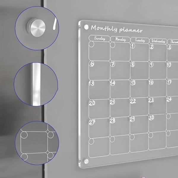 ✏️ Γράψτε, σβήστε, επαναλάβετε – η διάφανη ακρυλική επιφάνεια σβήνει εντελώς με το παρεχόμενο πανί, ανθεκτική σε γρατσουνιές και λεκέδες για χρόνια καθημερινής χρήσης