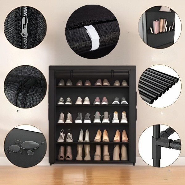 Εξοπλισμένη με ύφασμα ανθεκτικό στη σκόνη και κλείσιμο με φερμουάρ. Αυτή η παπουτσοθήκη διασφαλίζει ότι τα παπούτσια σας παραμένουν καθαρά, προστατεύοντάς τα από σκόνη και βρωμιά.